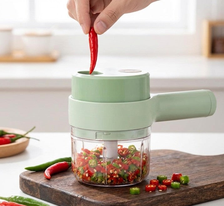 Meet your new kitchen best-friend the 4-in-1 Portable Electric Vegetable Cutter Set.